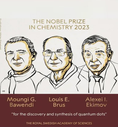 在當今的材料應(yīng)用領(lǐng)域中,納米科學技術(shù)發(fā)展中的多個里程碑式工作也來自于量子點相關(guān)研究。量子點(Quantum dots, QDs)已經(jīng)成為備受矚目的技術(shù)革命之一。2023年10月4日,瑞典皇家科學院宣布,美國麻省理工學院的蒙吉·巴文迪(Moungi G. Bawendi)、美國納米晶體科技公司的阿列克謝·埃基莫夫(Alexei I. Ekimov)和美國哥倫比亞大學的路易斯·布魯斯(Louis E. Brus)榮膺2023年諾貝爾化學獎,表彰他們 “發(fā)現(xiàn)和合成量子點”的科學貢獻。